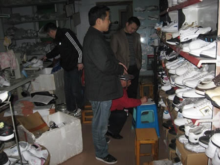 从查获的部分生产及销售单据看,冒牌和伪造产地的违法产品达84万双,涉案金额超过2亿元。该制假窝点只是冰山一角,其幕后由一个30多人的团队操纵,负责“全国采购、全球销售”。